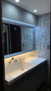 マンション洗面台 2022.01.12ライフスタイル, 家づくり 某マンションの洗面台と洗面台横の収納スペースを一体化した洗面台を作成。豪華で品のある大きな洗面台に作り上げました。実は既存の洗面台に対して右側の収納棚を造作して設置。ミラーは三面鏡と中は収納になっています。 下記が工事前後のお写真でございます。 ↑工事前 ↑工事後 工事前に比べて照明を適切な位置にセッティングし、壁紙なども統一感を出したことで全体的にリッチなイメージが増しました。 Tweet Share Pin it ライフスタイル, 家づくり 飲食店 オフィス改装 関連記事一覧 関連記事はありません。